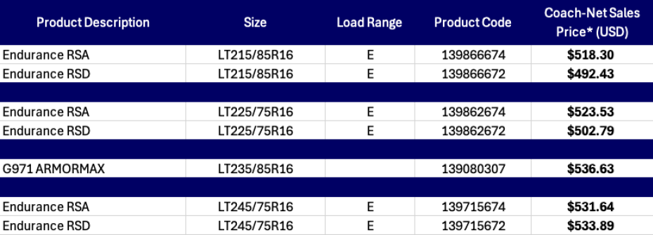 Find the commercial tire that best fits your RV